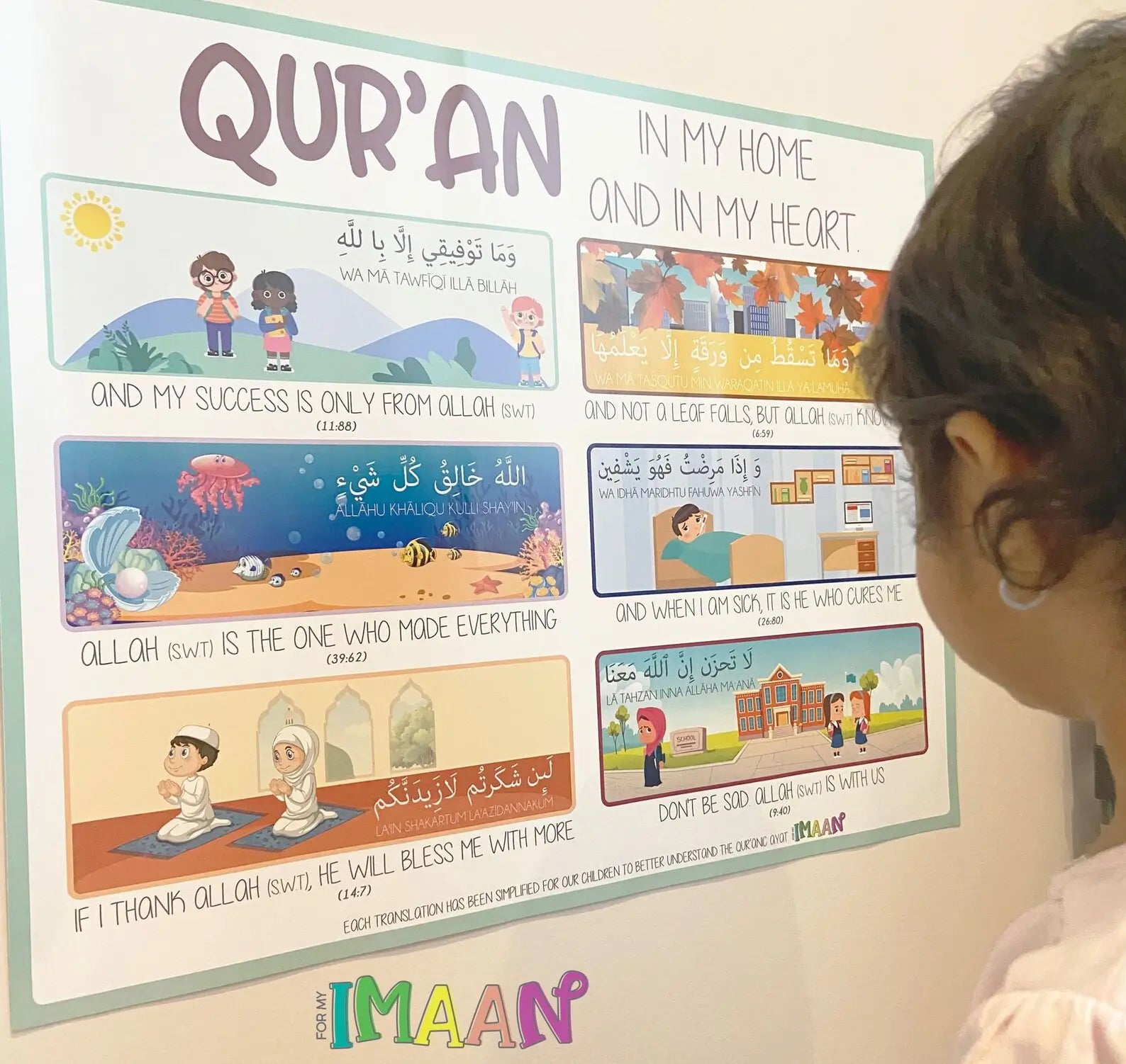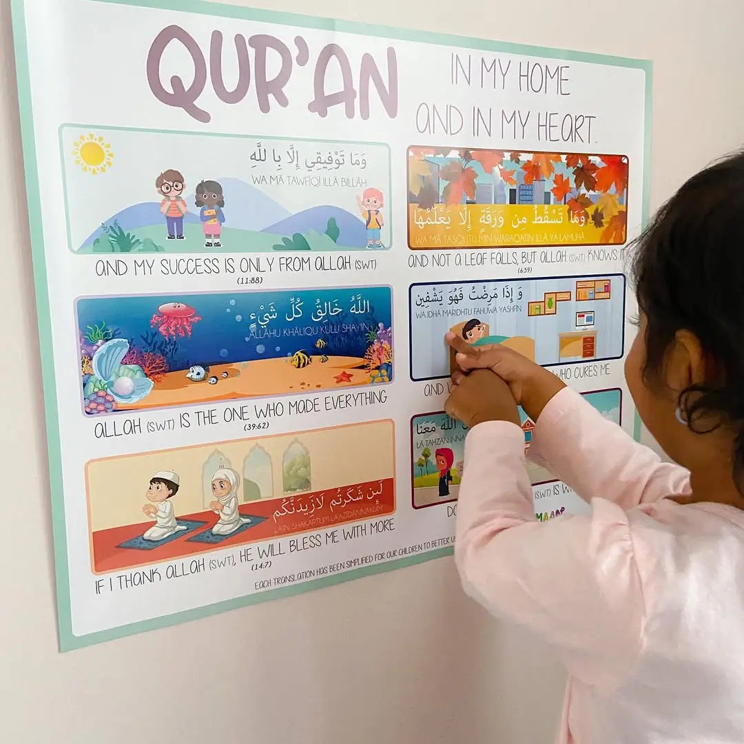 Our children are taught the Qur'an from a young age, and this poster set has short and easy verses for our little ones to learn. In a poster form with images to attract your little one will allow for easy memorisation.